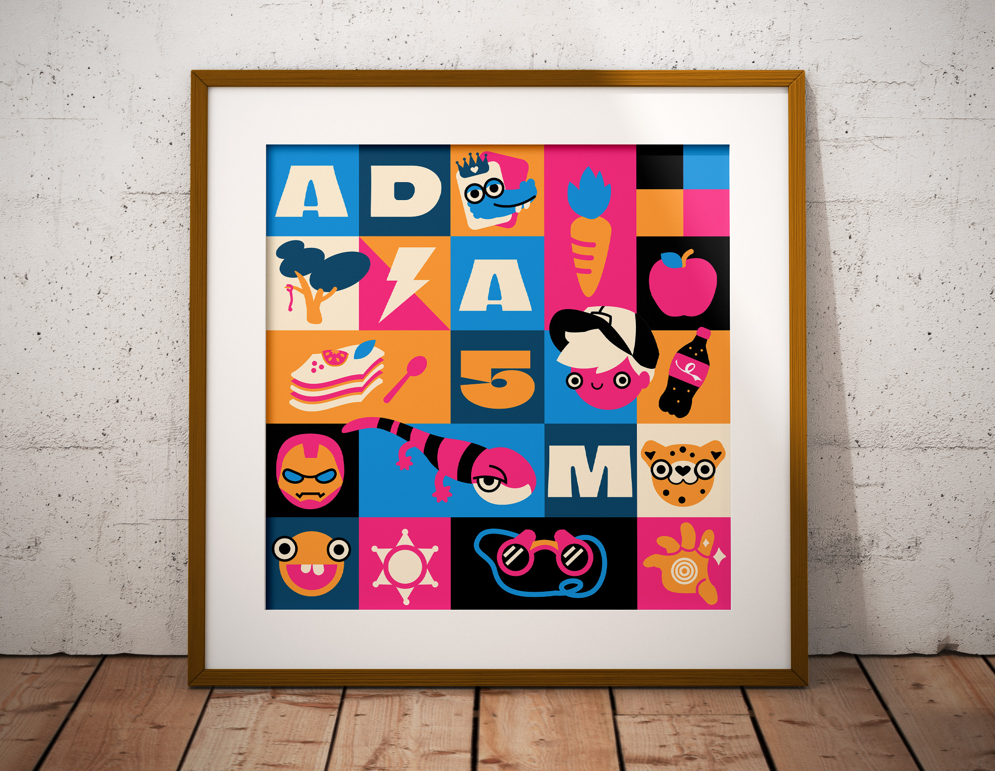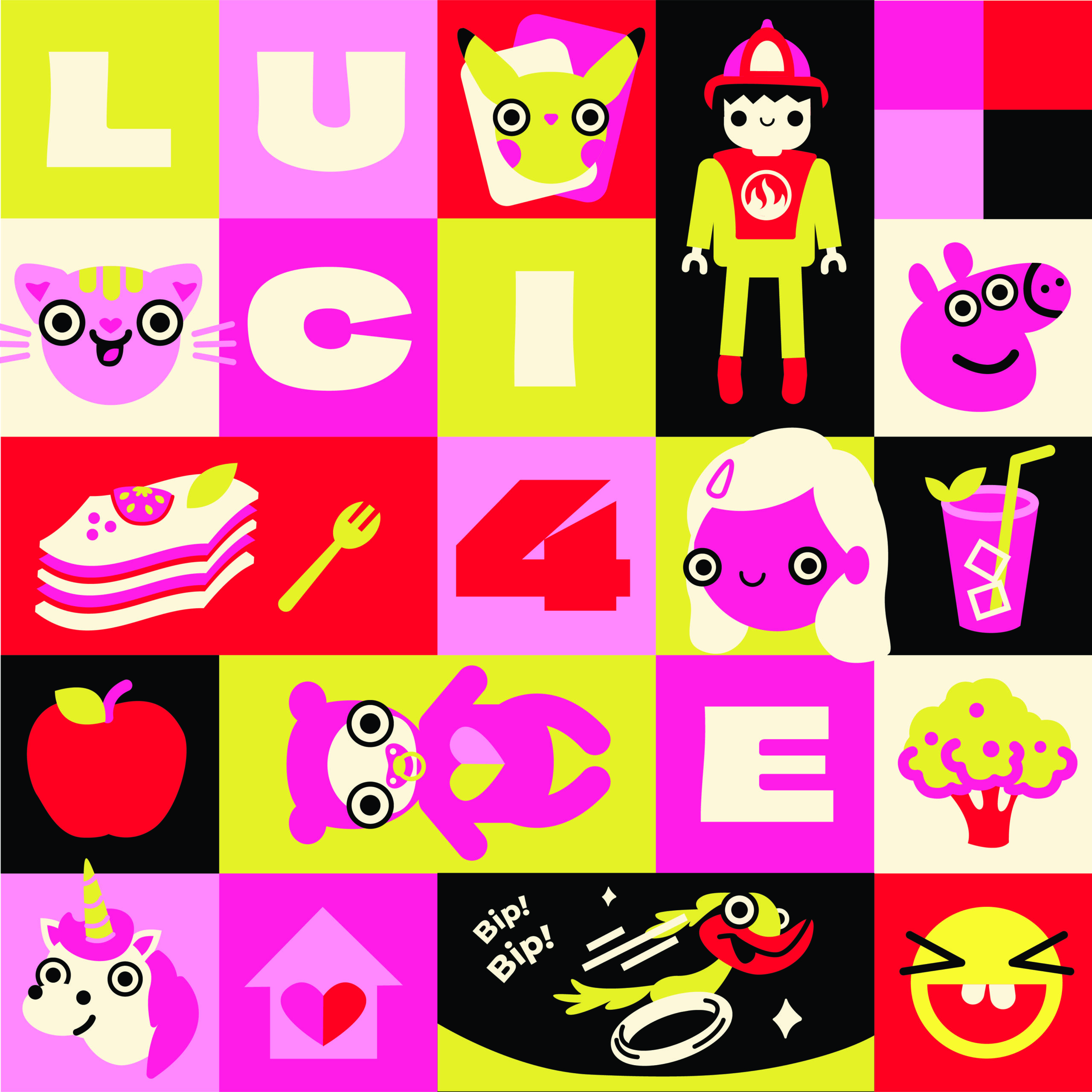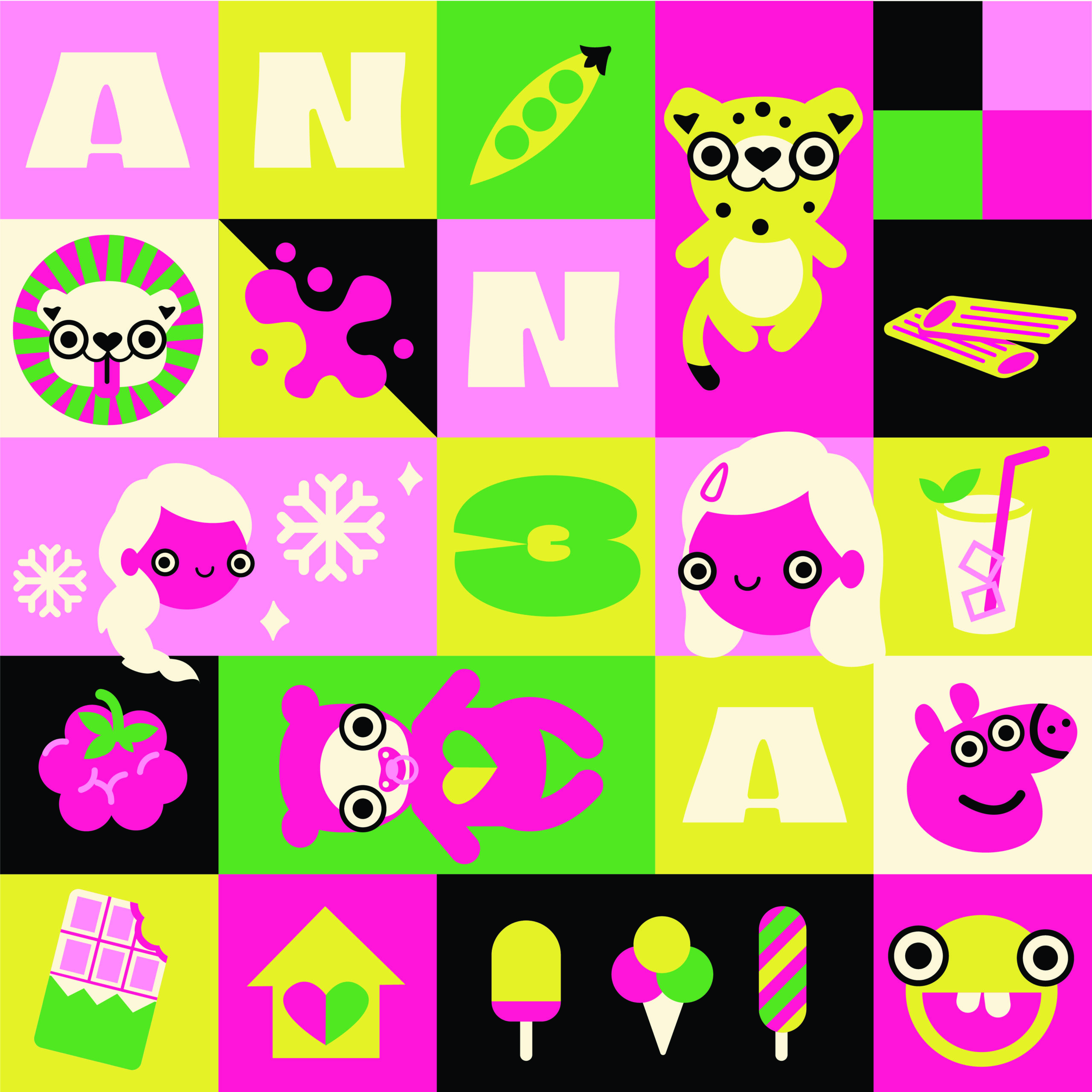 Dans cette série, chaque enfant est représenté non pas par ses traits physiques, mais par ce qui le définit vraiment : ses jeux préférés, rêves, ses passions, ses petits objets du quotidien. Chaque élément devient une icône, et ensemble ils forment une mosaïque qui lui ressemble comme personne d’autre.